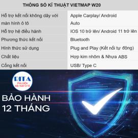 Vietmap W20 là thiết bị hổ trợ chuyển đổi màn hình xe sử dụng Apple CarPlay hoặc Android Auto từ có dây thành không dây qua wireless.